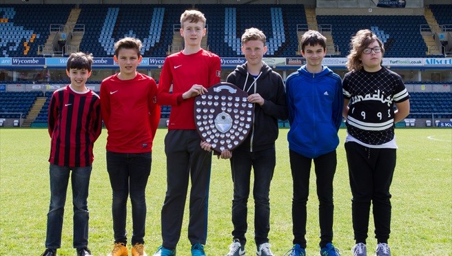 Pitstone and Ivinghoe U12 The club also won the U11 Fairplay award, and representatives from both age goups are pictured above at Wycombe Wanderers ground, Adams Park, on 11th April 2015.